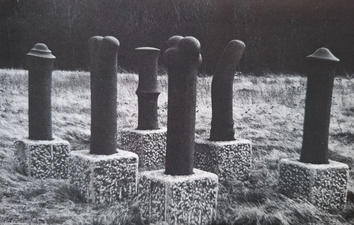 Some of his works were sold as public decorations, but many just filled the forests and fields where his children played. Their reason for existing was that he wanted to make them.