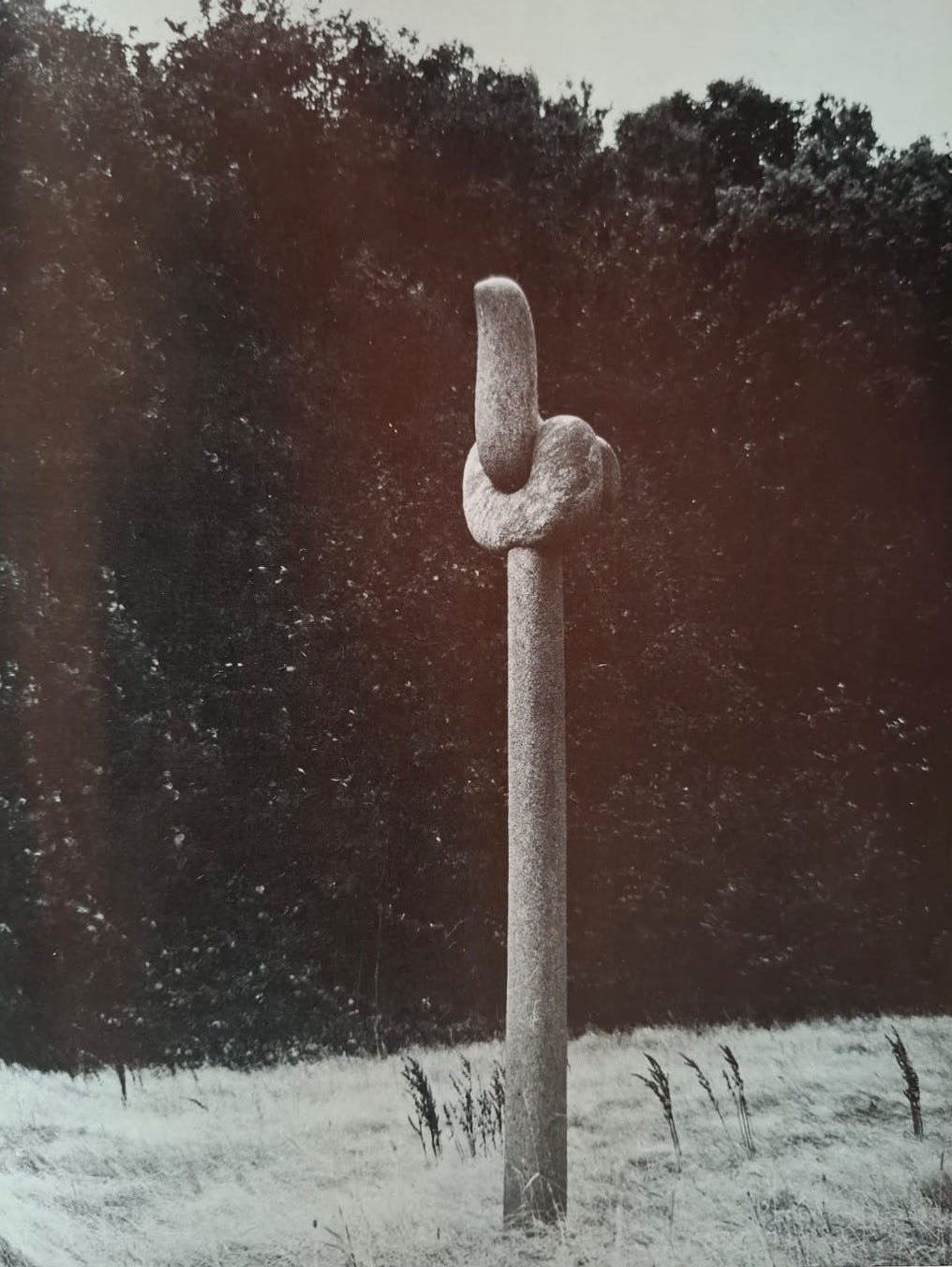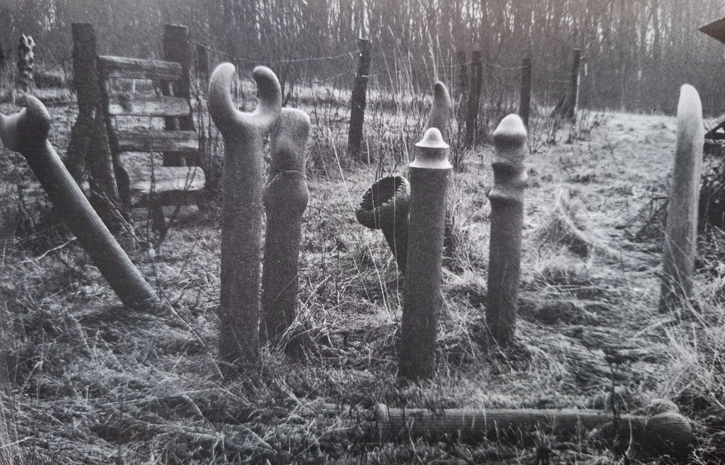 In 2023, Karen and Mette, two women in their late 70s who volunteered at the art gallery, told me that the sculptor’s farm was still intact. Why no one had told me this before, I do not know. They had been out there in the morning before work, looking at the sculptures, and they giggled when they talked about it.