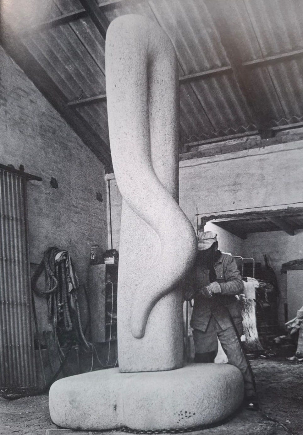 The sculptor’s wife, in an interview in 2004, says he had an unfathomable capacity for work. He would rise early, eat breakfast with the kids, and then work in the quarry or carve or tend the farm until lunch, when he’d sleep—as the old stone cutters he had apprenticed with would sleep each lunch, sitting up—before going out to work until dusk.